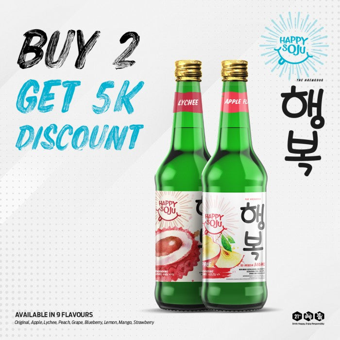 Happy Soju Buy 2 Bottle Get DISCOUNT 5k